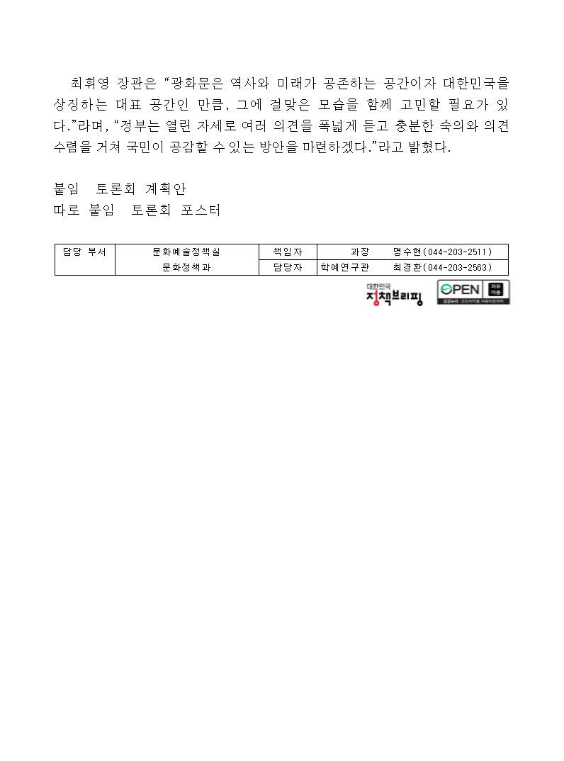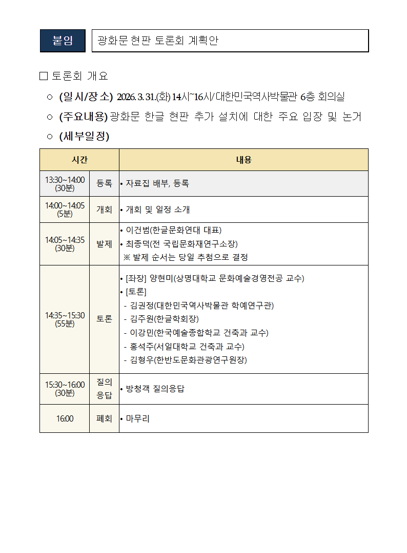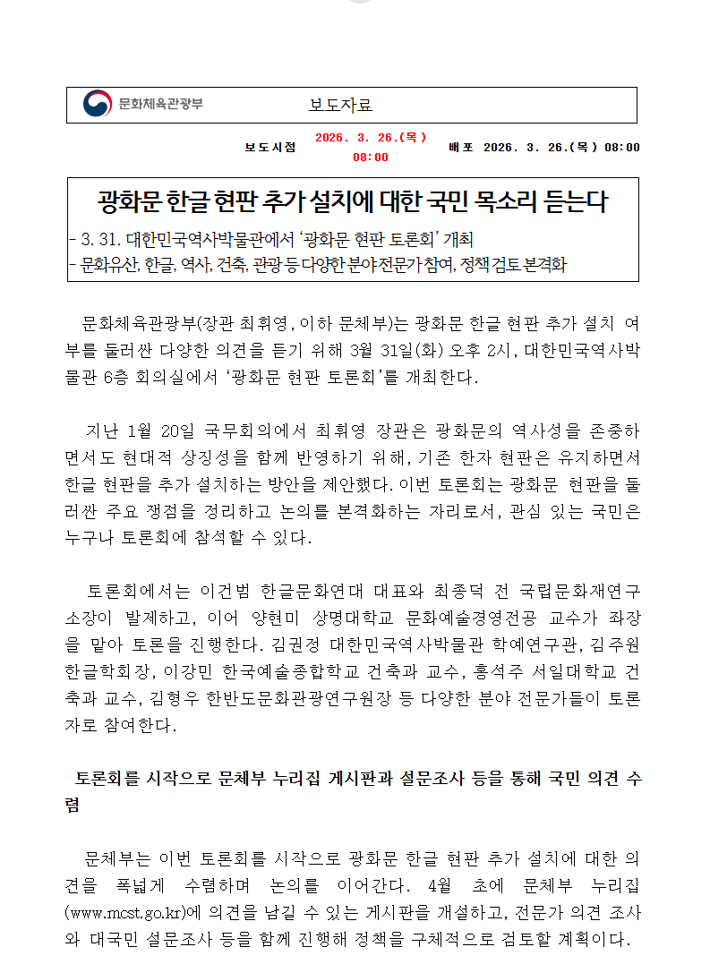 광화문 한글 현판 추가 설치에 대한 국민 목소리 듣는다